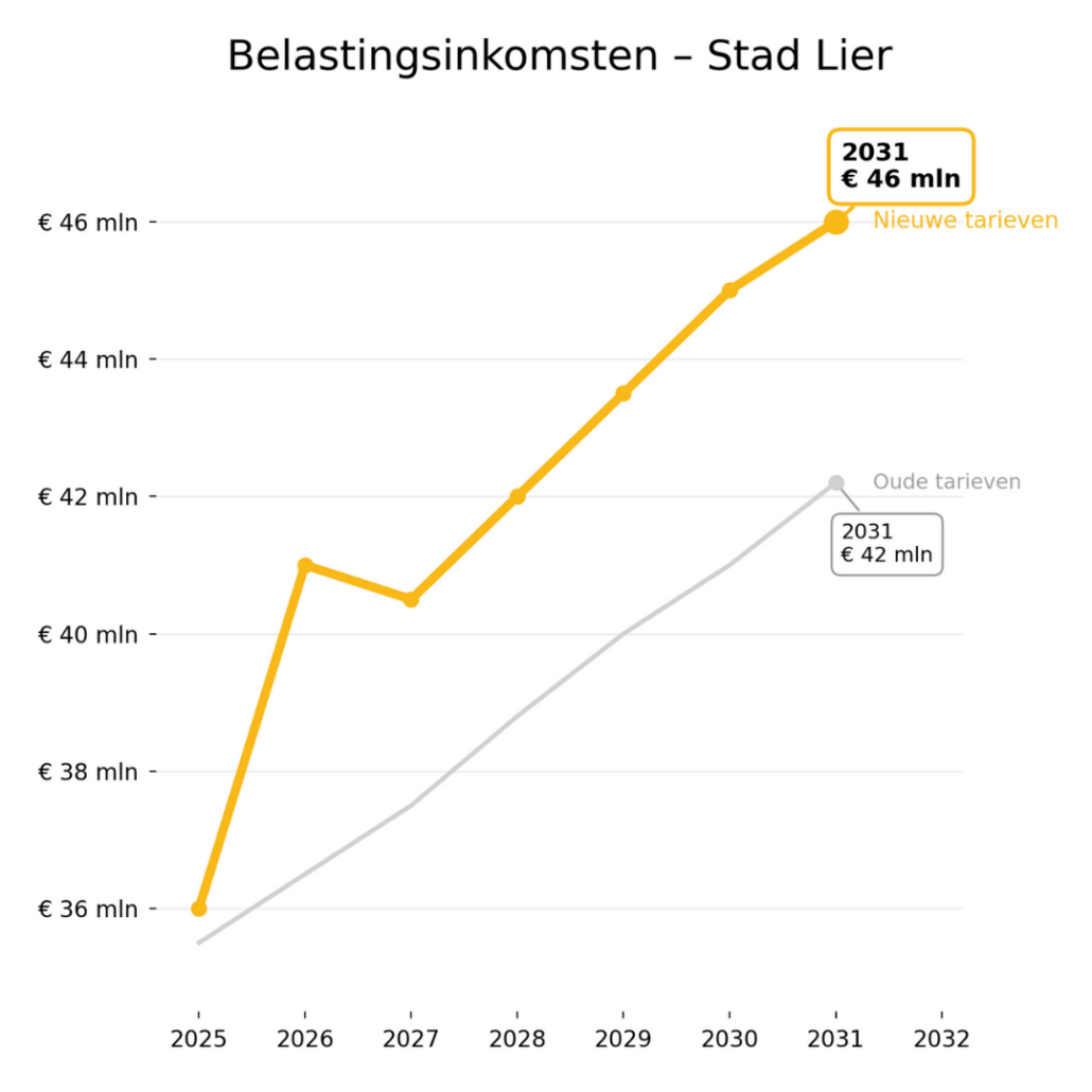 Het is bijna bewonderenswaardig hoe u erin slaagt om applaus te oogsten met een grafiek die aantoont dat u vanaf 2026 extra diep in de zakken van de Lierenaars en Hooiktenaars zit. Il faut le faire.